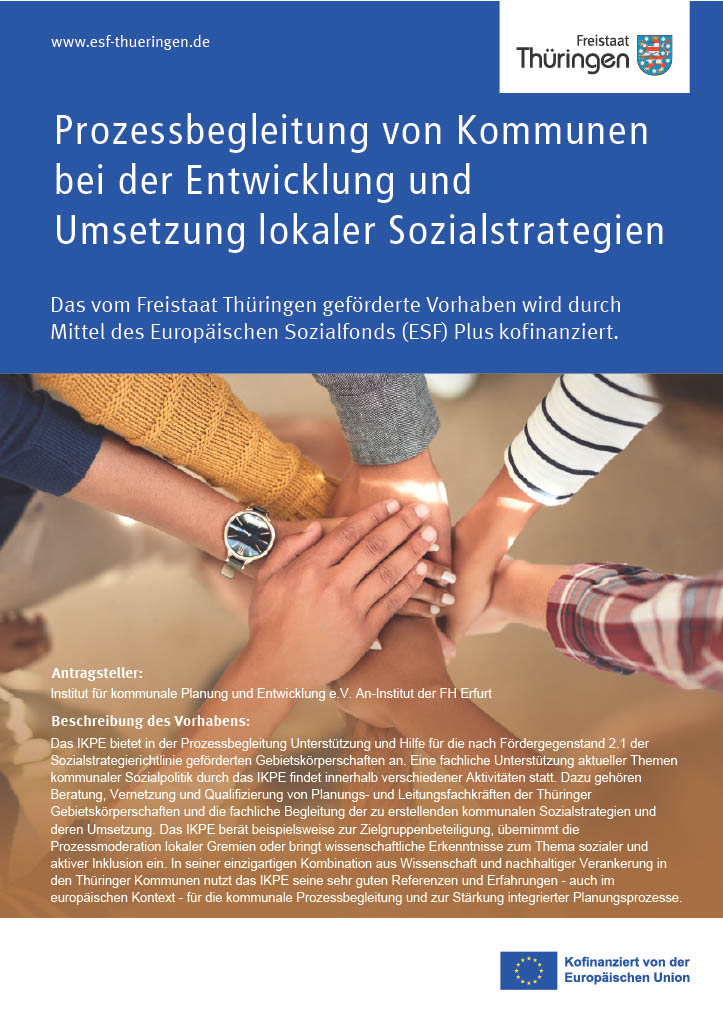 Wenn Sie Interesse haben, als Thüringer Modellkommune an dem Projekt teilzunehmen, können Sie sich bis zum 02.04.2026 unter ulrike.scheit(at)ikpe-erfurt.de melden.