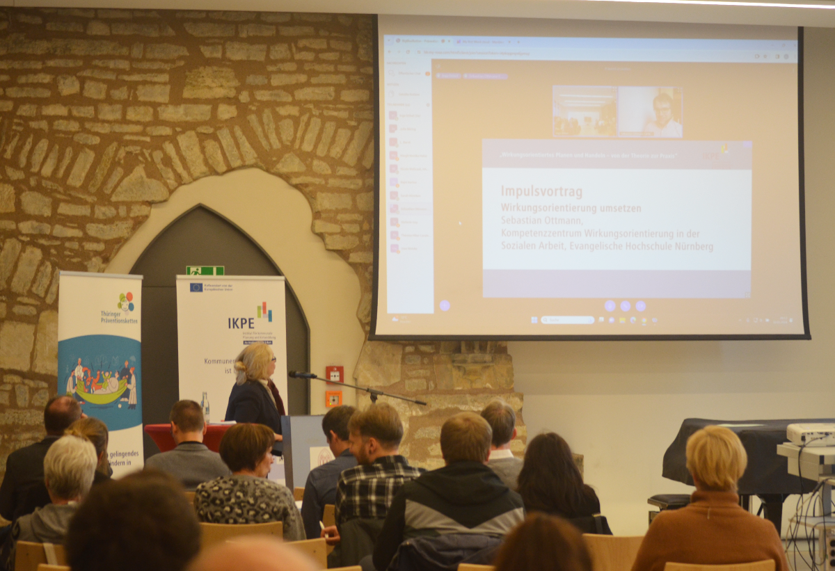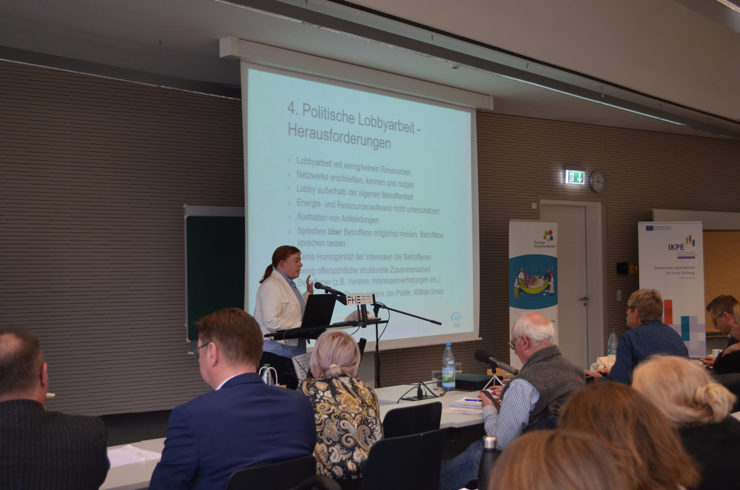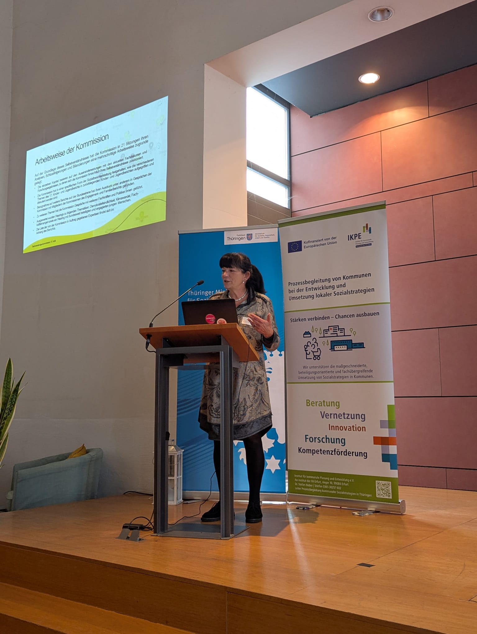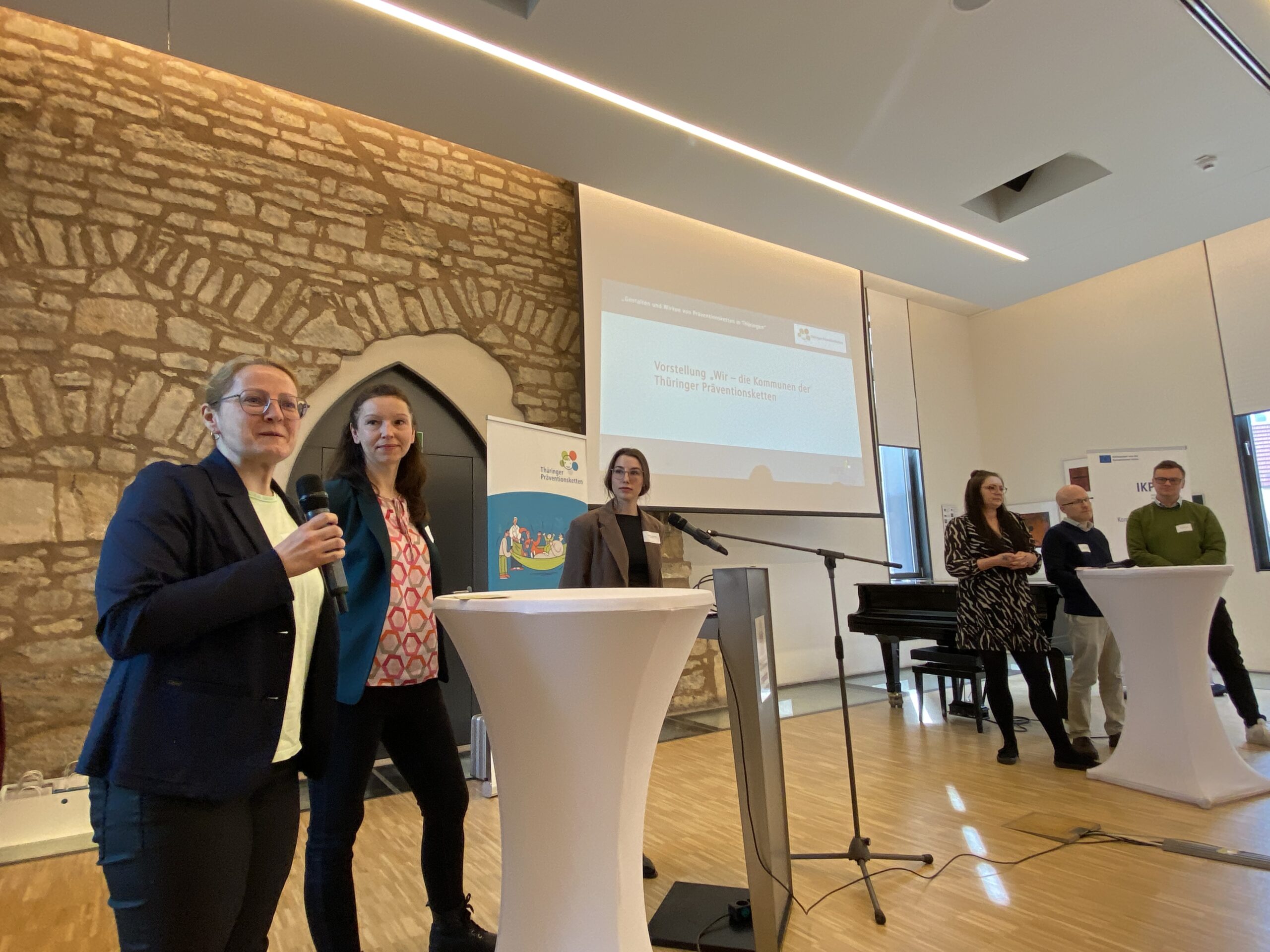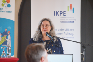Zum Abschluss der Veranstaltung gab das IKPE Einblicke in aktuelle Projekte: Es erfolgten die Vorstellung der Servicestelle Thüringer Pflegestrukturplanung sowie Einblicke in die Arbeit der Thüringer Präventionsketten als Unterstützungsangebote für die Gebietskörperschaften.