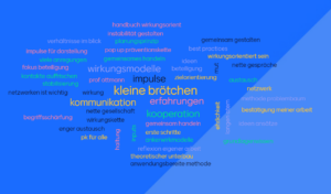 Sowohl aus Jena als auch aus dem Wartburgkreis brachten sich die Sozialplaner*innen und Jugendhilfeplaner*innen in die Diskussionen und den konstruktiven Austauschprozess ein. In einem abschließenden Panel zeigten die Workshopleiter*innen insbesondere auf, wie auf Bundesebene die Kommunen unterstützt werden sollten und stellten eine Vielzahl an praktischen Anregungen vor. Es wurde deutlich, dass der Prozess noch am Anfang steht und nicht nur die kommunalen Präventionsketten, sondern auch das Zusammenwirken von Bund, Ländern und Kommunen systematisch ausgebaut werden soll.