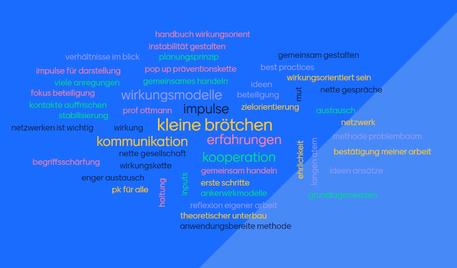 Im Themenfeld Wirkung und Daten zeigen sich Fortschritte, aber auch Hürden wie fehlende Datengrundlagen, Zielkonflikte und die Balance zwischen Wirkungsanalyse und Vertrauen. Erfolgreiche Zusammenarbeit braucht vor allem Austausch auf Augenhöhe, Vertrauen und eine gemeinsame Vision.