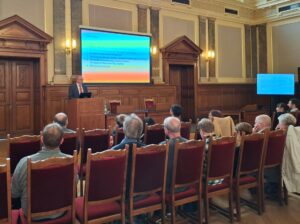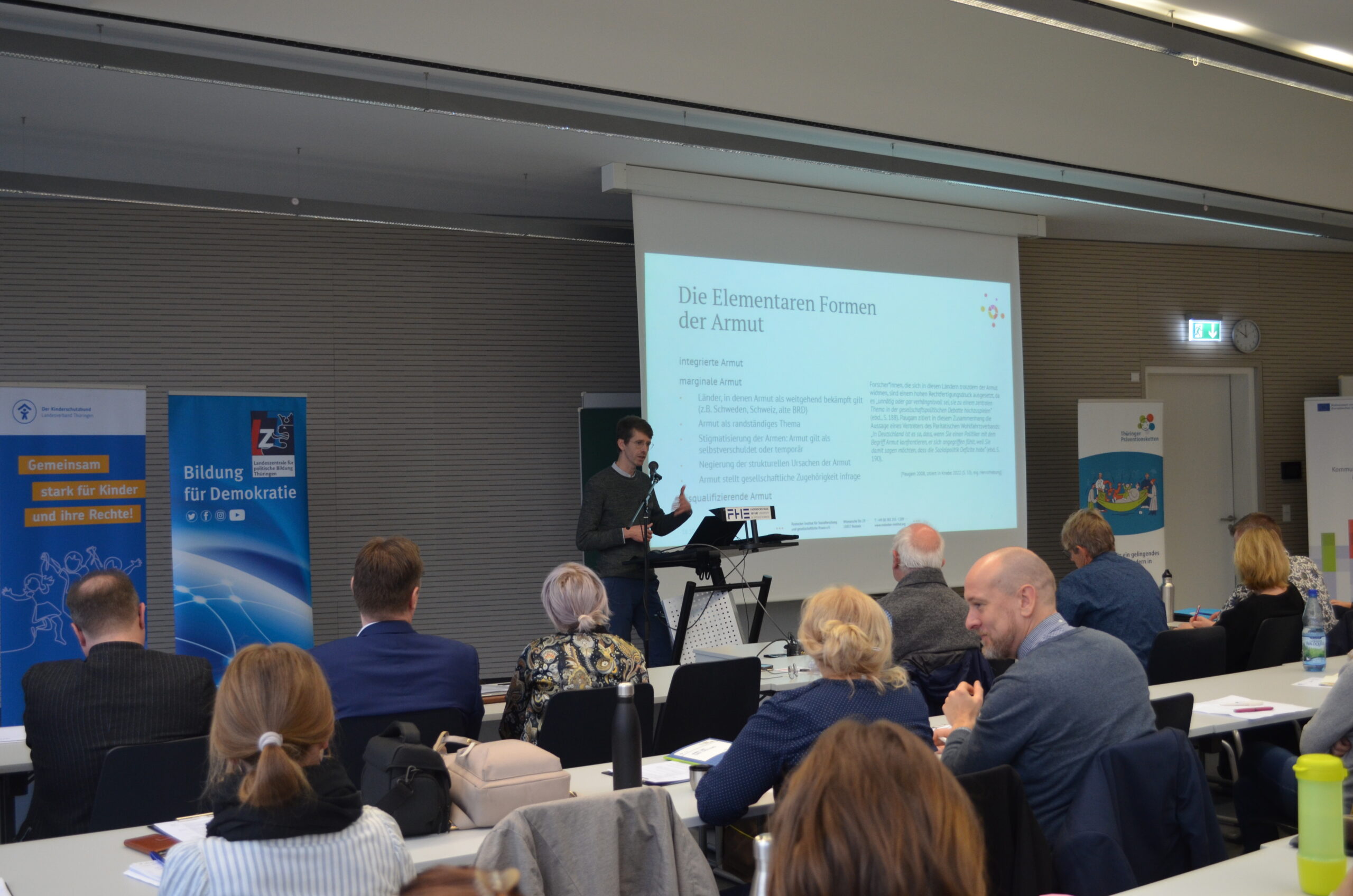 Dr. Stefan Huber präsentierte das Team, die thematischen Schwerpunkte und die Formate der Begleitung von Kommunen bei der Entwicklung und Umsetzung lokaler Sozialstrategien. Mit dem Projektstart im September 2023 hat die Prozessbegleitung ihre Arbeit aufgenommen.