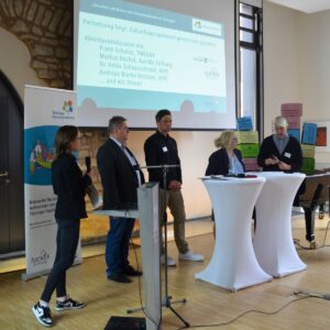 Darüber hinaus wurde den Besucher*innen aktuelle Ergebnisse der Zukunftswerkstatt zur Sozialstrategierichtlinie (ESF Plus) in Thüringen vorgestellt, die in Zusammenarbeit mit dem Kompetenzzentrum Strategische Sozialplanung (KOSS Plus) der LIGA der Freien Wohlfahrtspflege in Thüringen umgesetzt wird.
