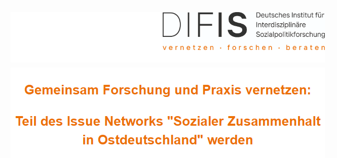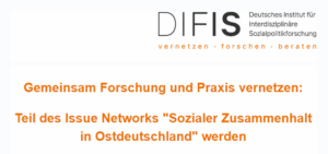 Die Befragung ist eingebettet in die Aktivitäten des Issue Network Sozialer Zusammenhalt in Ostdeutschland – gefördert vom Deutschen Institut für Interdisziplinäre Sozialpolitikforschung (DIFIS)).