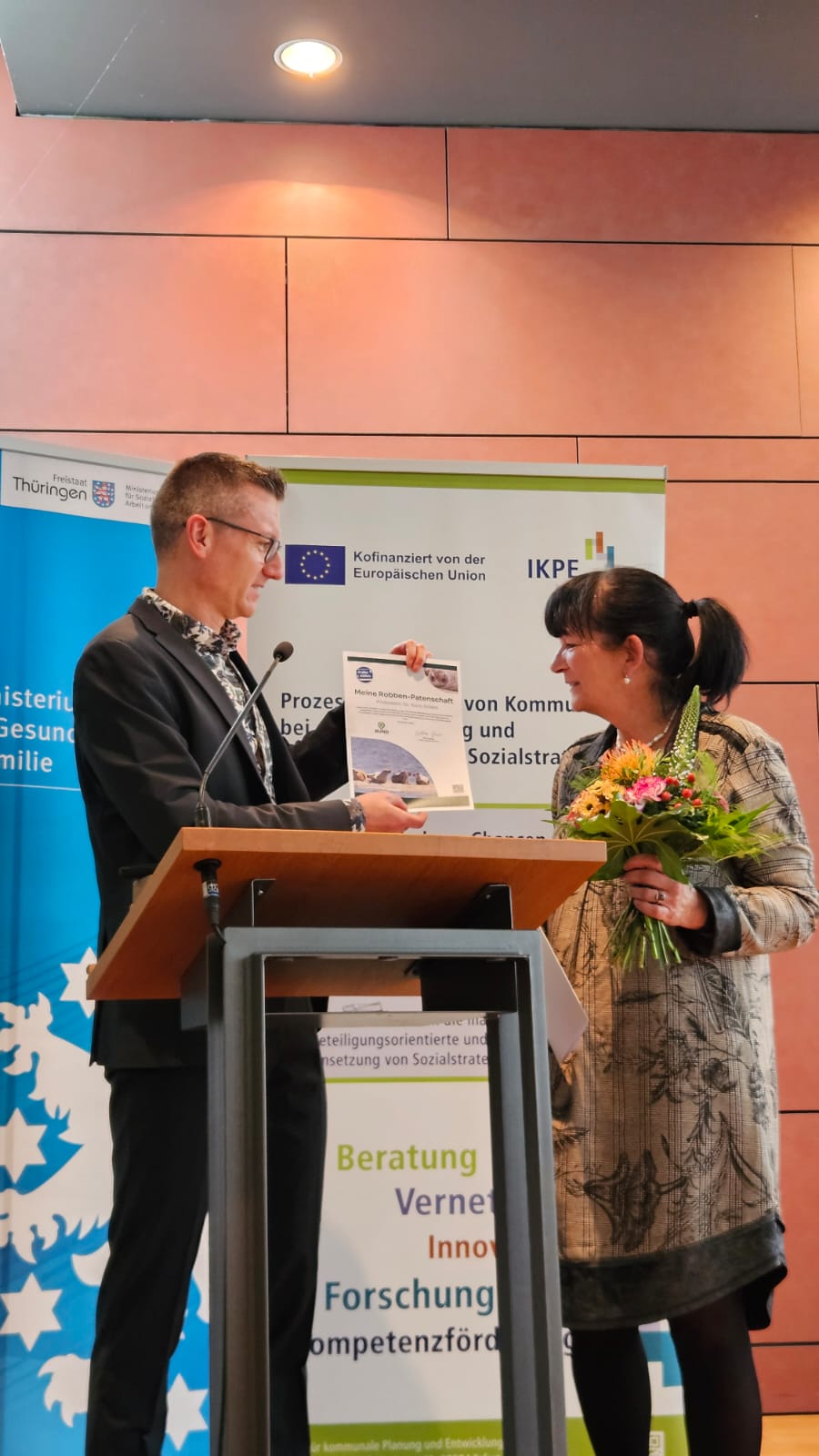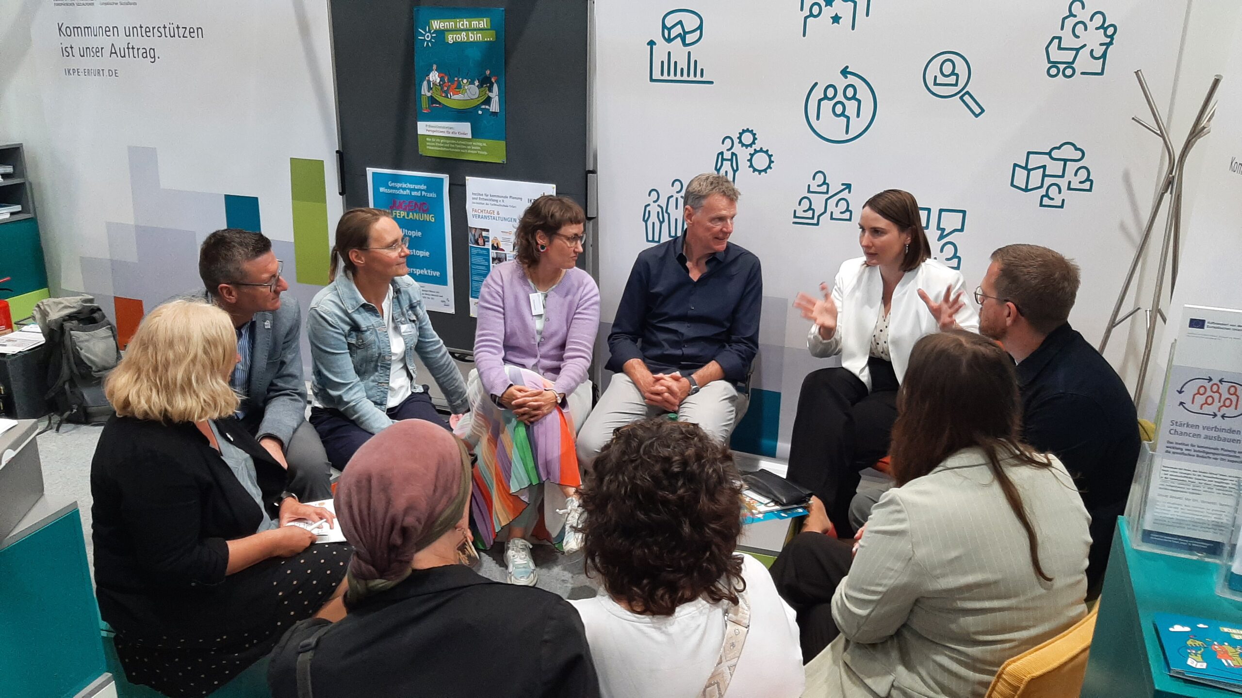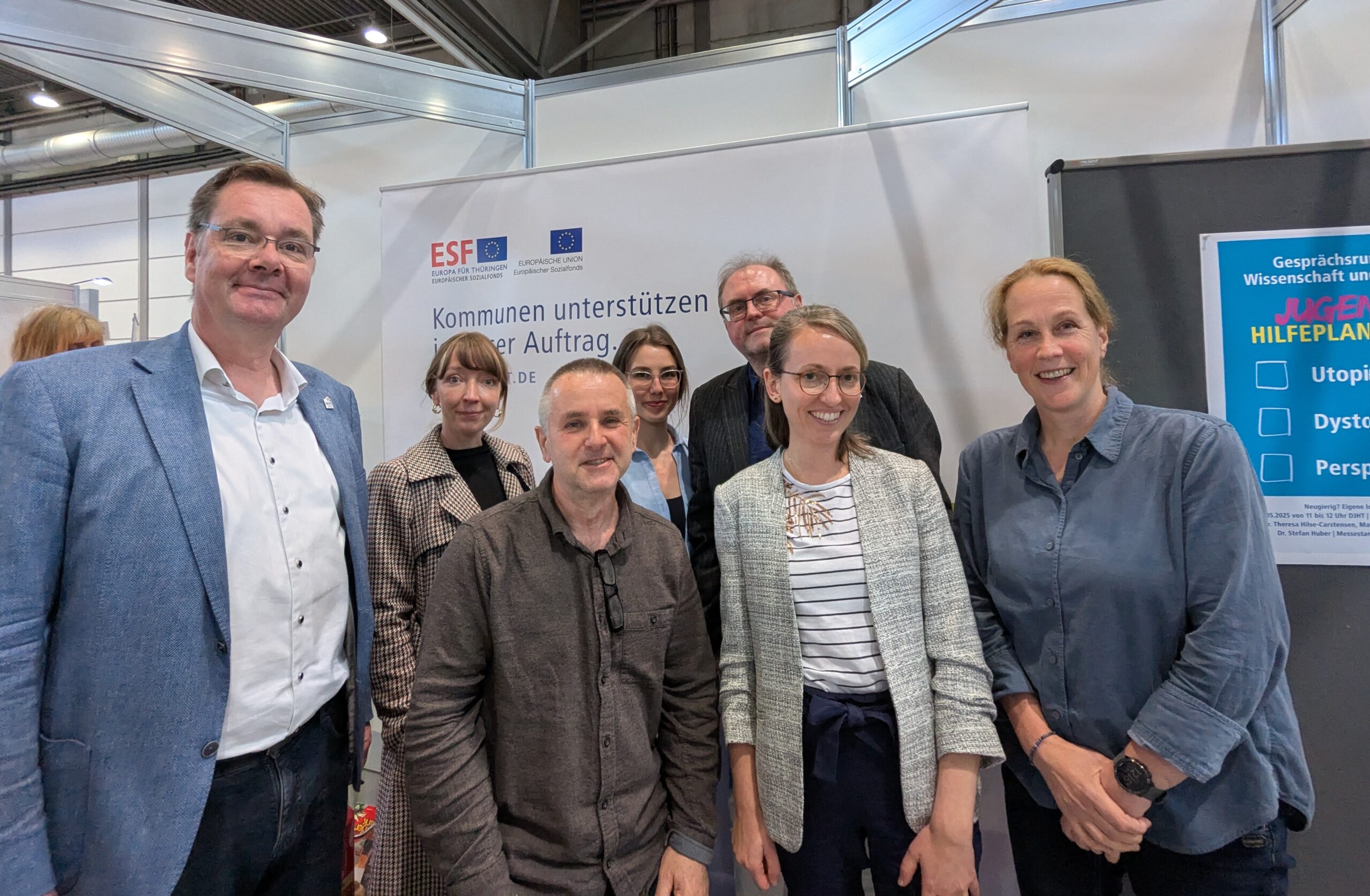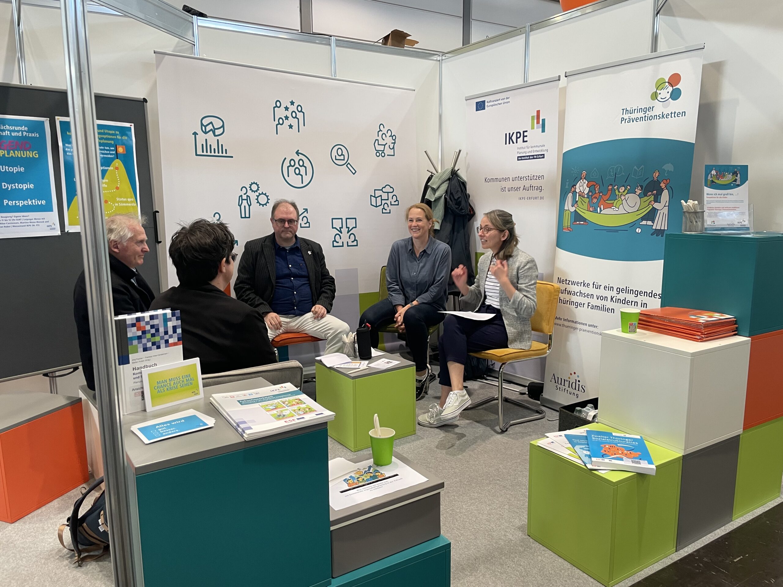 Nicht wenige Besucher, vor allem aus dem kommunalen Bereich aus ganz Deutschland, interessierten sich auch für den Stand des IKPE. Das Team erläuterte, was für Bereiche und Angebote für Kommunen das Institut im Fokus hat. Sie haben zum Ziel, Städte und Gemeinden zu beraten sowie zu begleiten, um sie damit beispielsweise in der strategischen Sozialplanung zu unterstützen. Auch das neue ESF Plus-geförderte Projekt zur Prozessbegleitung kommunaler Sozialstrategien sowie das Programm “Thüringer Präventionsketten” stießen in der inhaltlichen Darstellung auf Resonanz.