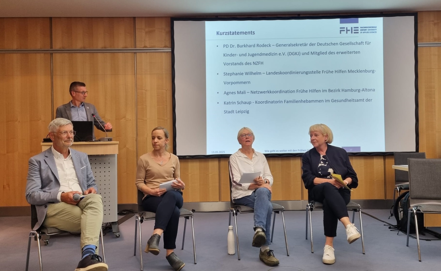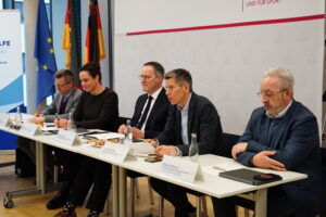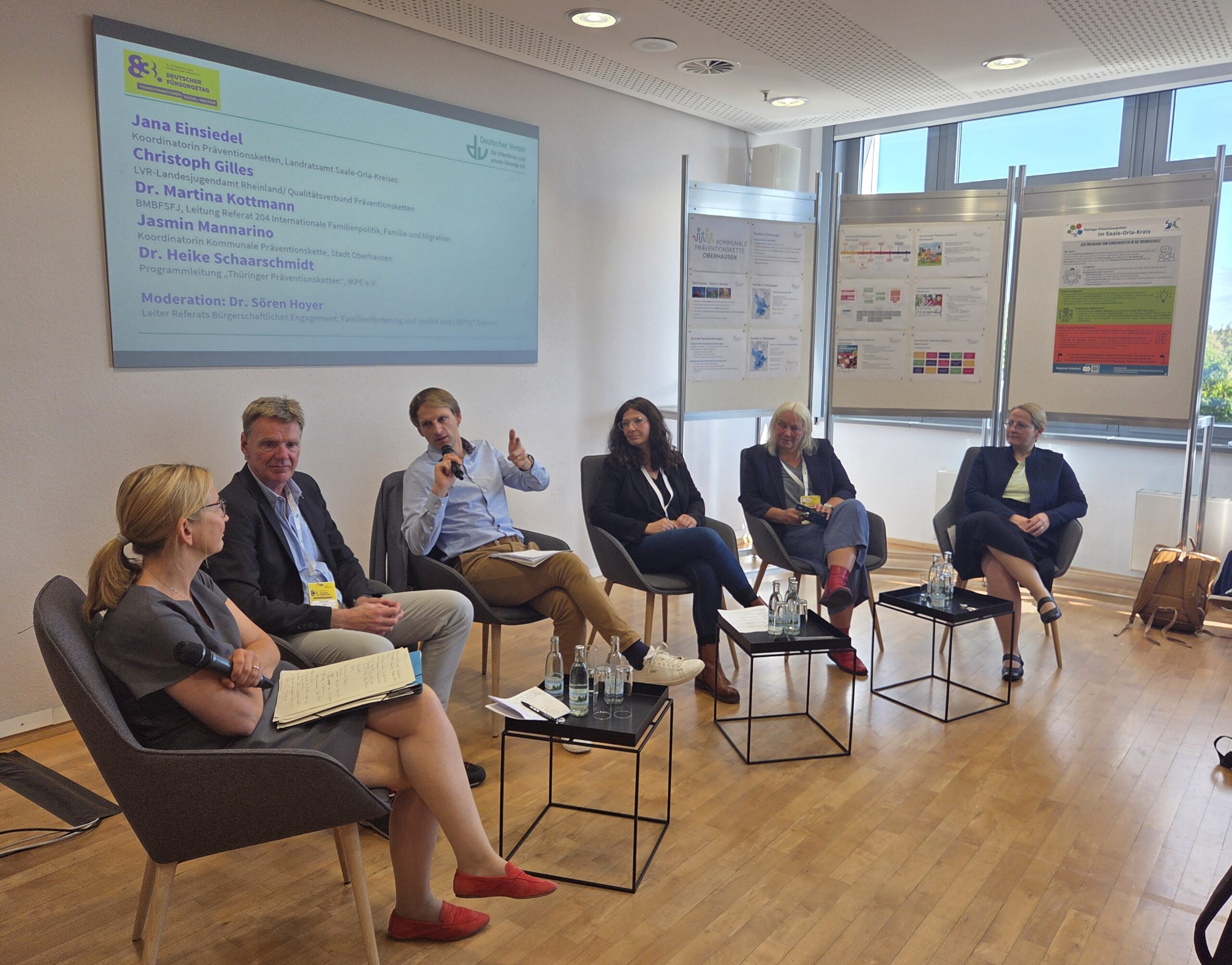Ins Gespräch kommen dazu Dr. Heike Schaarschmidt, Projektleiterin Programm “Thüringer Präventionsketten” am IKPE in Erfurt; Dr. Julia Pudelko, Wissenschaftliche Bereichsleitung Kinder- und Jugendhilfe am Institut für soziale Arbeit in Münster; Heiko Brodermann, Fachberatung Jugendhilfeplanung im LVR-Landesjugendamt Rheinland in Köln und Pia Steinfels, Jugendhilfeplanerin in Monheim am Rhein.