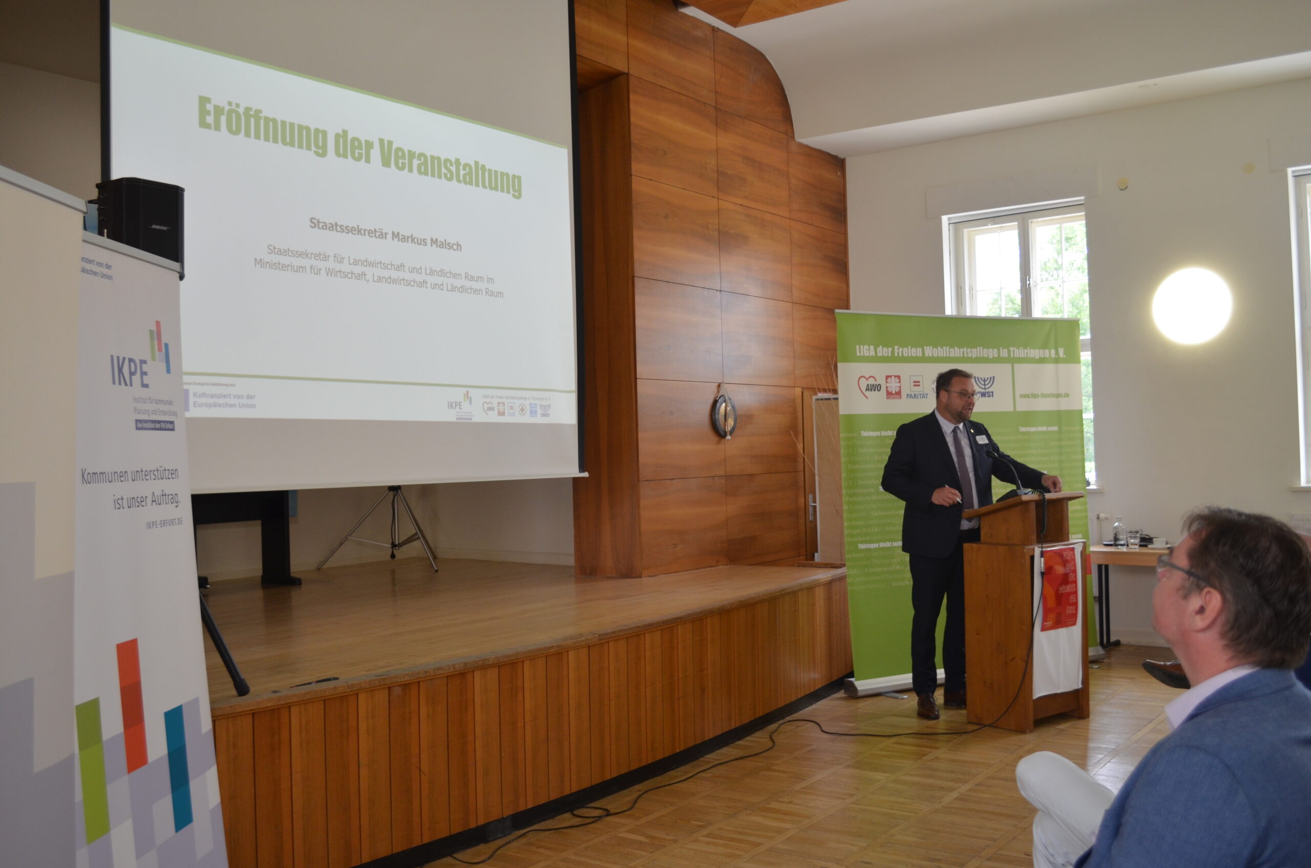 Im Anschluss an zwei Grußworte durch den LIGA der Freien Wohlfahrtspflege in Thüringen e. V. und den Thüringer Landtag sowie einem fachlichen Impuls von Prof. Dr. Holger Wunderlich von der Ostfalia Hochschule für angewandte Wissenschaften arbeiteten die Teilnehmenden in verschiedenen Workshops an konkreten Fragestellungen weiter. Das IKPE gestaltete gemeinsam mit dem KOSS plus des LIGA der Freien Wohlfahrtspflege in Thüringen e. V. den Workshop “Lebensqualität im Wandel – integrierte Planung für vitale ländliche Räume”.