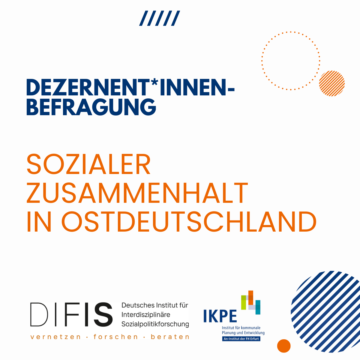 Gern laden wir alle Sozialdezernent:innen oder Fachbereichsleitungen in Ostdeutschland ein, sich aktiv an unserer Befragung zu beteiligen. Die Befragung kann unter folgendem Link abgerufen werden. Die Beantwortung dauert etwa 15 Minuten.