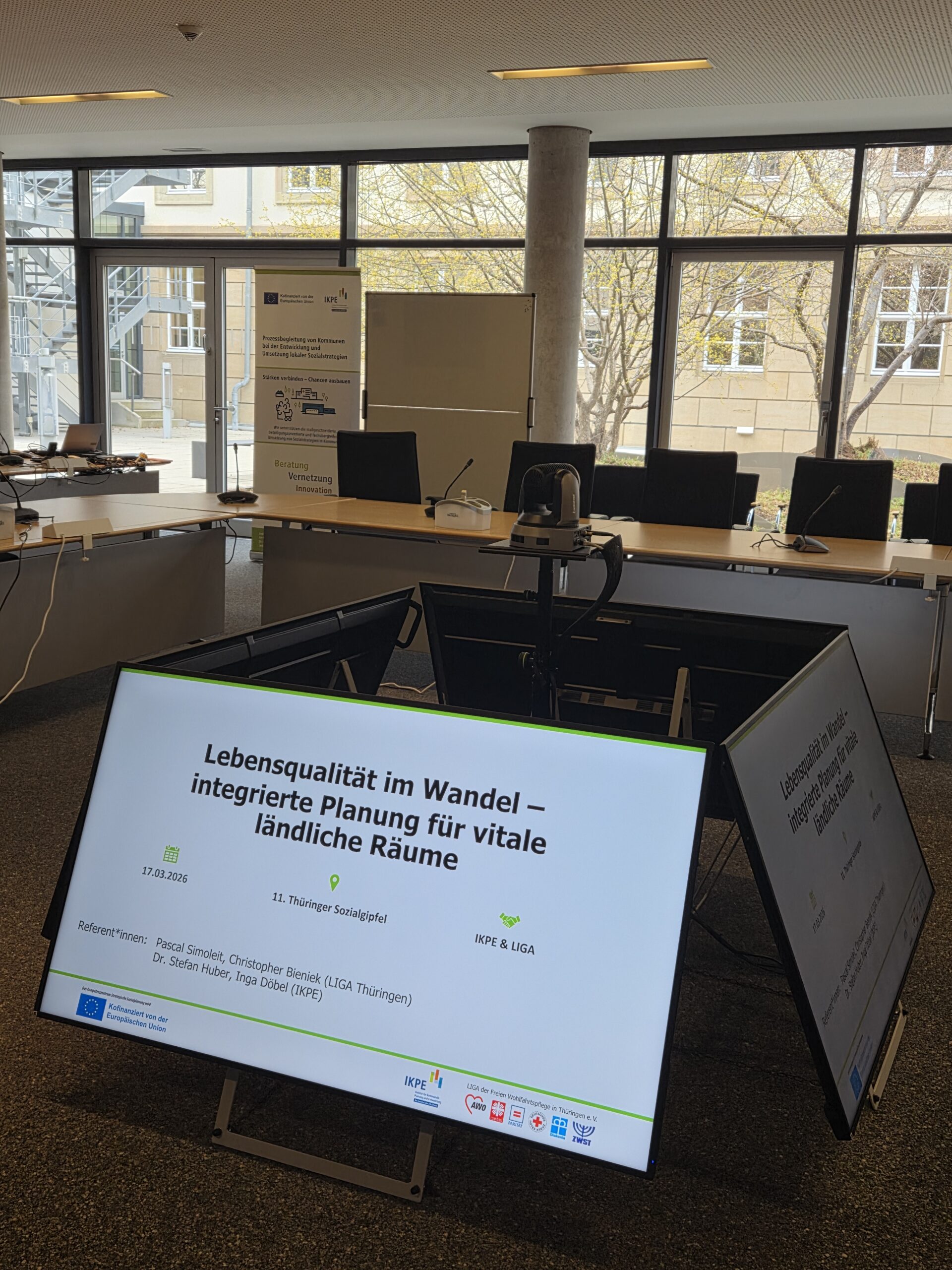 Das Institut für kommunale Planung und Entwicklung e.V. (IKPE) wurde vom Thüringer Ministeriums für Soziales, Gesundheit, Arbeit und Familie (TMSGAF) entsprechend des ersten Thüringer Pflegeentwicklungsplans mit der Schaffung einer Servicestelle zur Unterstützung der Kommunen bei der Pflegestrukturplanung beauftragt. In Kooperation mit dem TMSGAF und den Pflegekassen begleitet das IKPE fortan bis zu vier Thüringer Modellkommunen fachlich bei der Umsetzung einer kommunalen Pflegestrukturplanung. Großes Interesse an dem neuen Projekt zeigte sich bei der Online-Auftaktveranstaltung am 03.03.2026 mit 28 Teilnehmende aus 15 Kommunen.